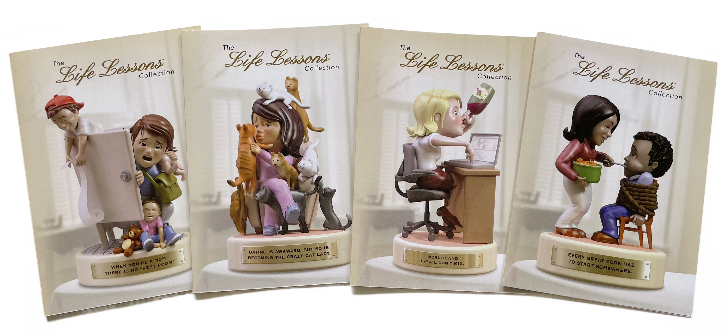 We found inspiration in those collectible Hummel figurines that depict life’s sweet moments. We added a modern satirical twist and Voila! The Life Lessons campaign was born.